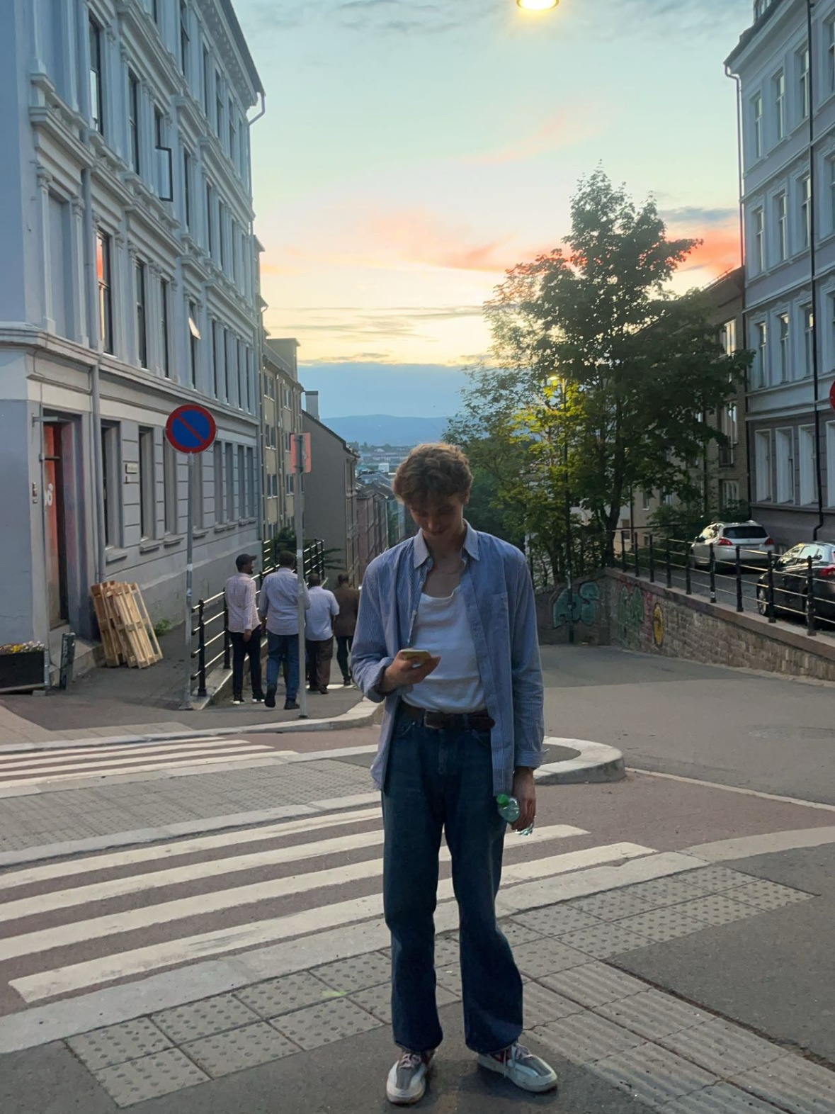 Bilde 3: I dette bildet ønsket jeg å skape en mer urban stemning, samtidig som motivet skulle fremstå avslappet og bekymringsløs. Jeg valgte en location i en bakke med utsikt over byen, og tidspunktet rundt solnedgang for å få et mykt og naturlig lys. Noe jeg kunne forbedret her er å jobbe mer med bakgrunnen for å unngå at elementer og mennesker konkurrerer om oppmerksomheten bak motivet.